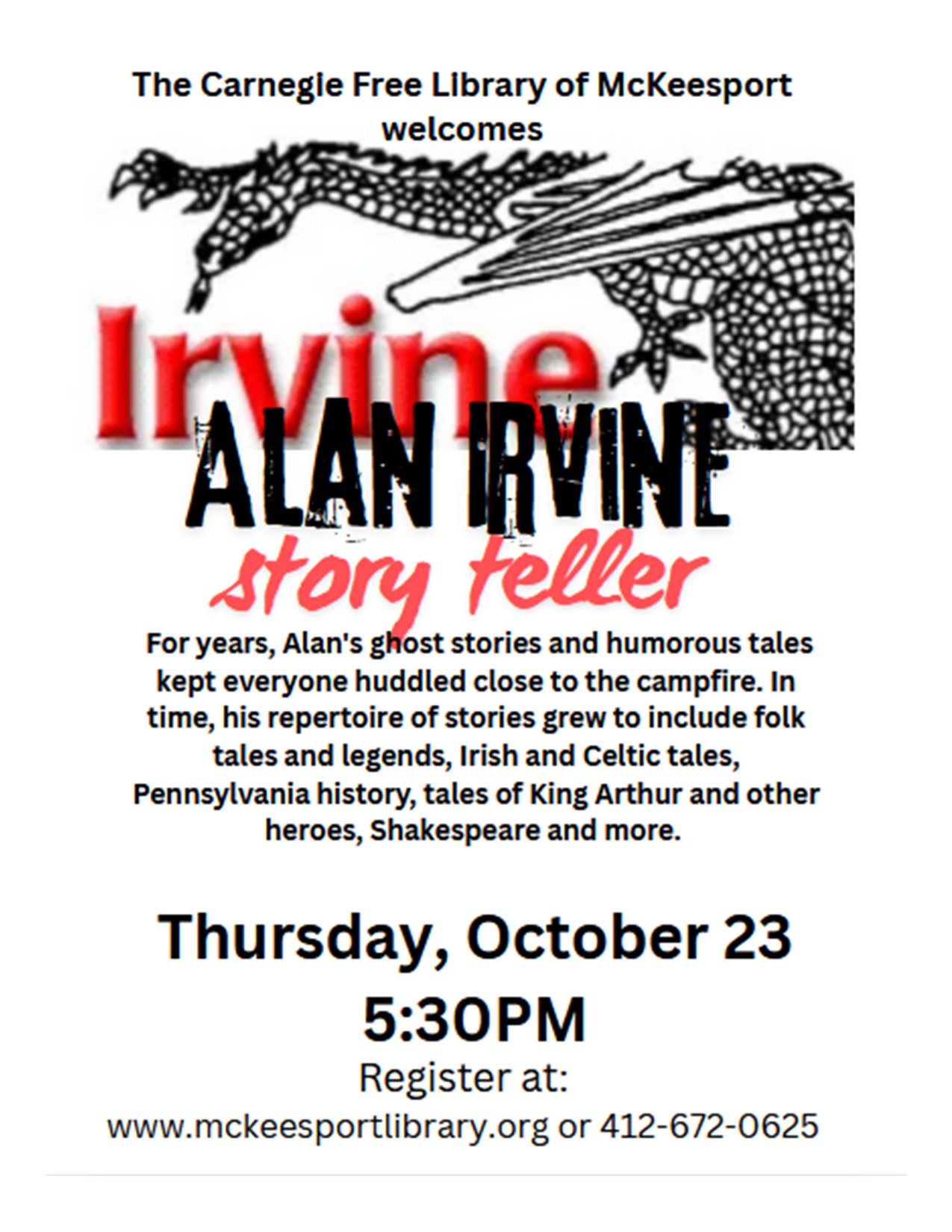 For years, Alan’s ghost stories and humorous tales kept everyone huddled close to the campfire. In time, his repertoire of stories grew to include folk tales and legends, Irish and Celtic tales, Pennsylvania history, tales of King Arthur and other heroes, Shakespeare and more.