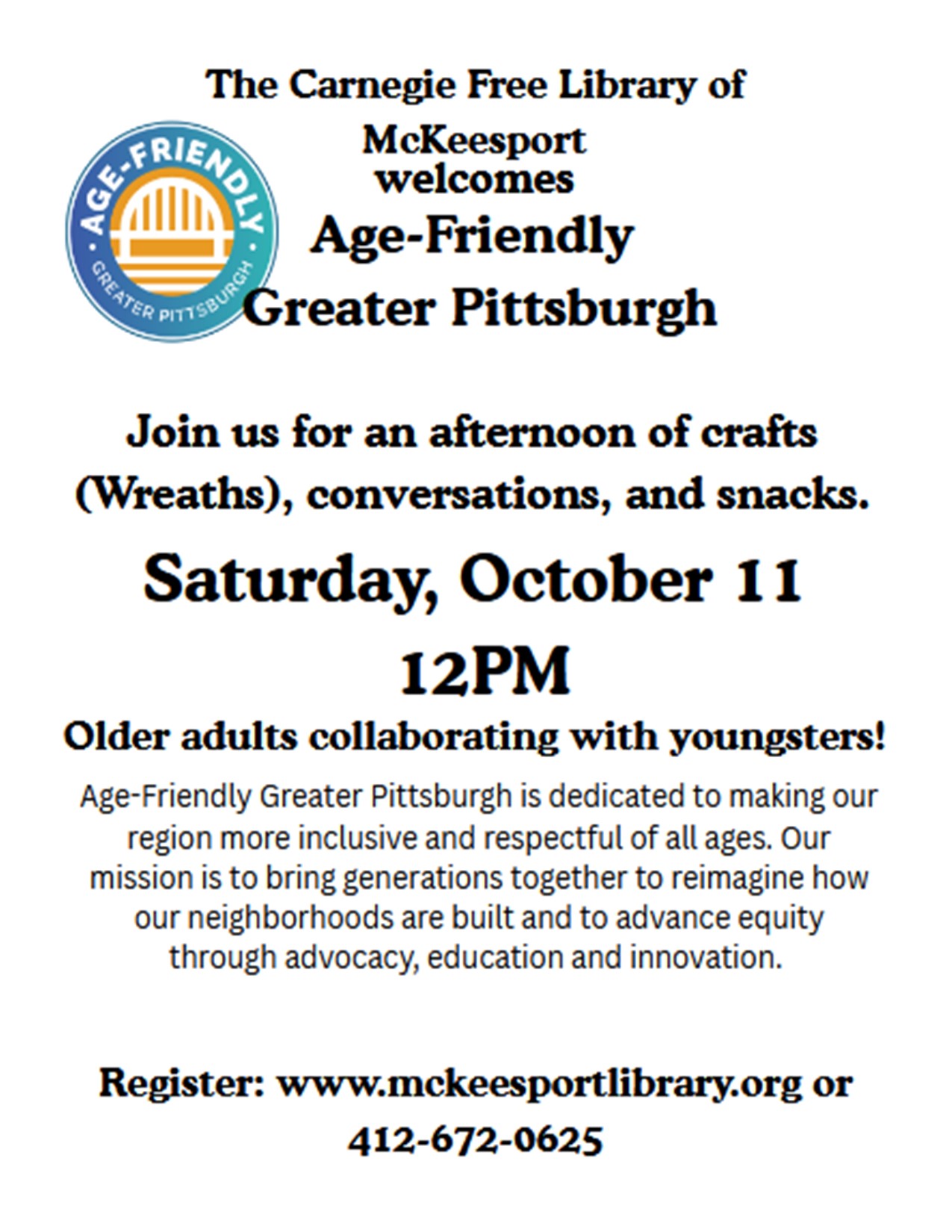Age-Friendly Greater Pittsburgh is dedicated to making our region more inclusive and respectful of all ages. Our mission is to bring generations together to reimagine how our neighborhoods are built and to advance equity through advocacy, education and innovation.