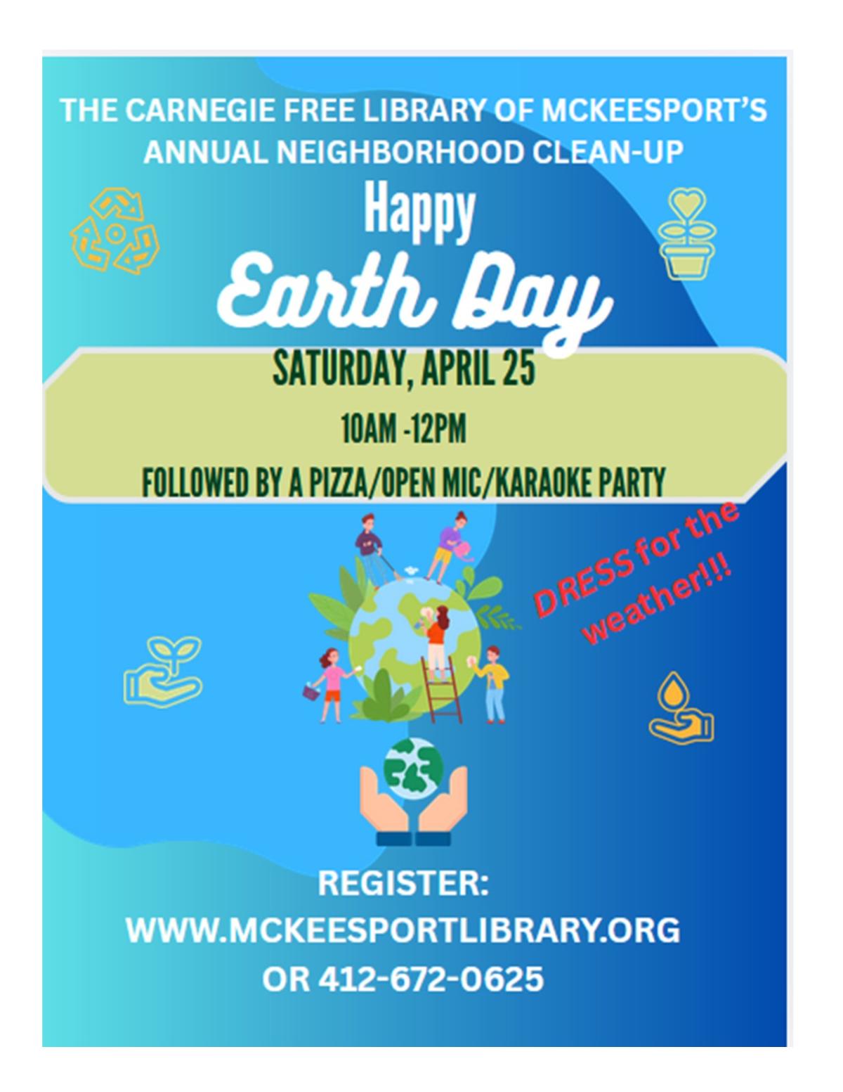 300 Kennedy Ave.Duquesne, PA 15110 (in the school, use outer steps on Kennedy side)